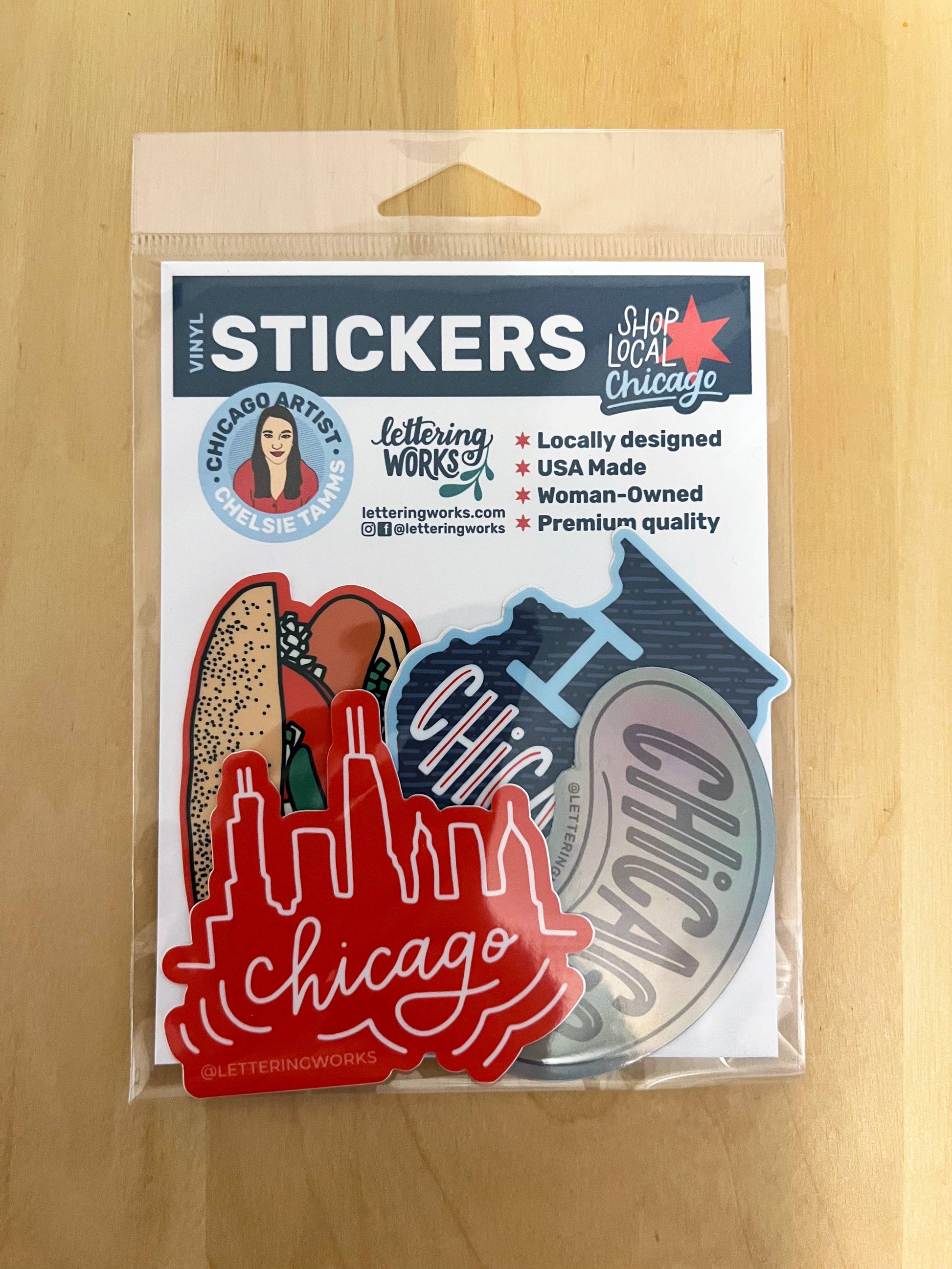 • Other packs available upon request, send us a message if you'd like to customize a pack with Chicago stickers that are best sellers at your location.