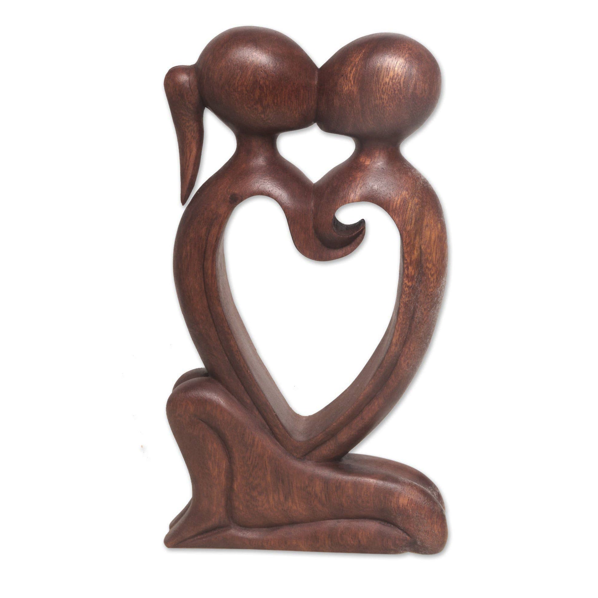 Two become one in this beautiful, abstract statuette by Balinese artisan Wayan Rendah. Using techniques taught to him by his father, Wayan hand carves the couple, who embrace in a heart shape, from natural suar wood. This lovely design would make a perfect addition to any home, or as a romantic gift to a loved one.