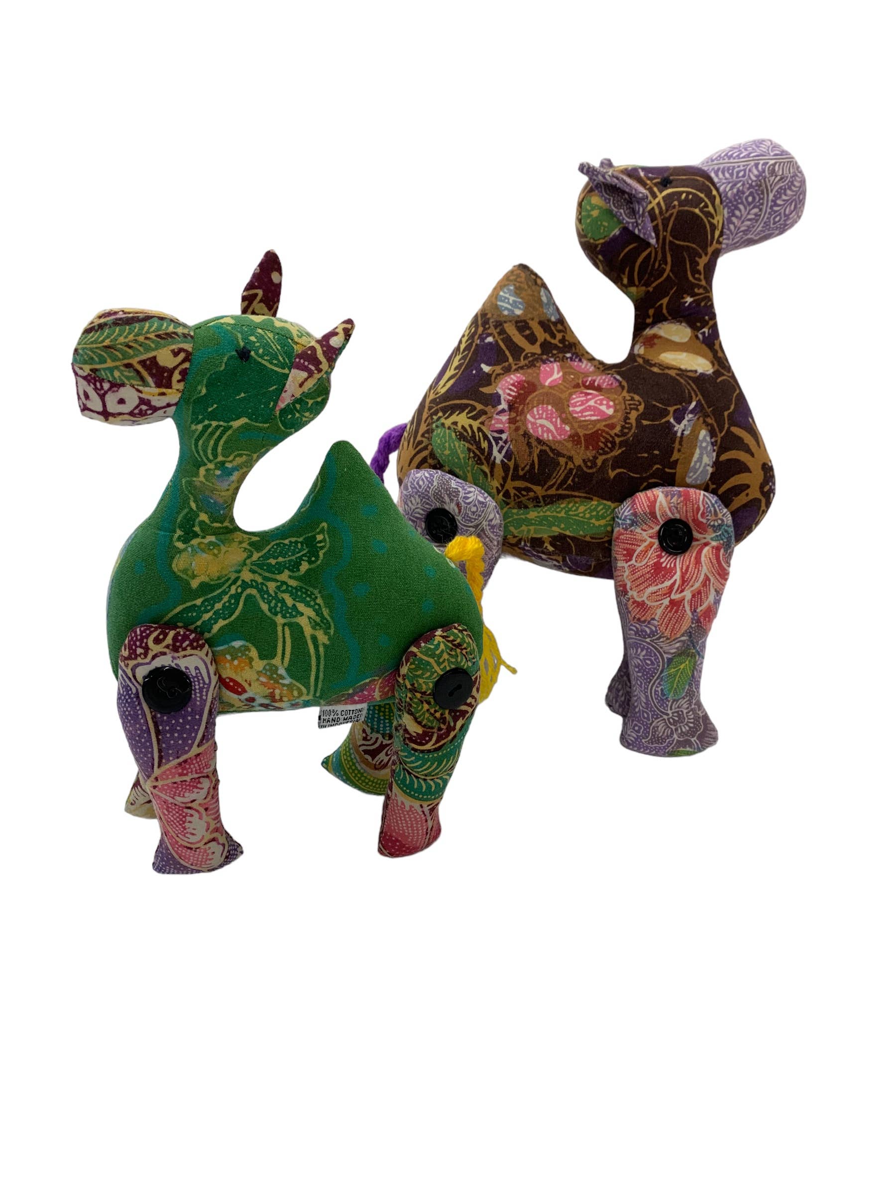 Each camel is crafted from entirely unique batik fabric, in various colors and patterns— no two are alike! If you have a color preference, please add a note to your order and we will do our best to accommodate your request.