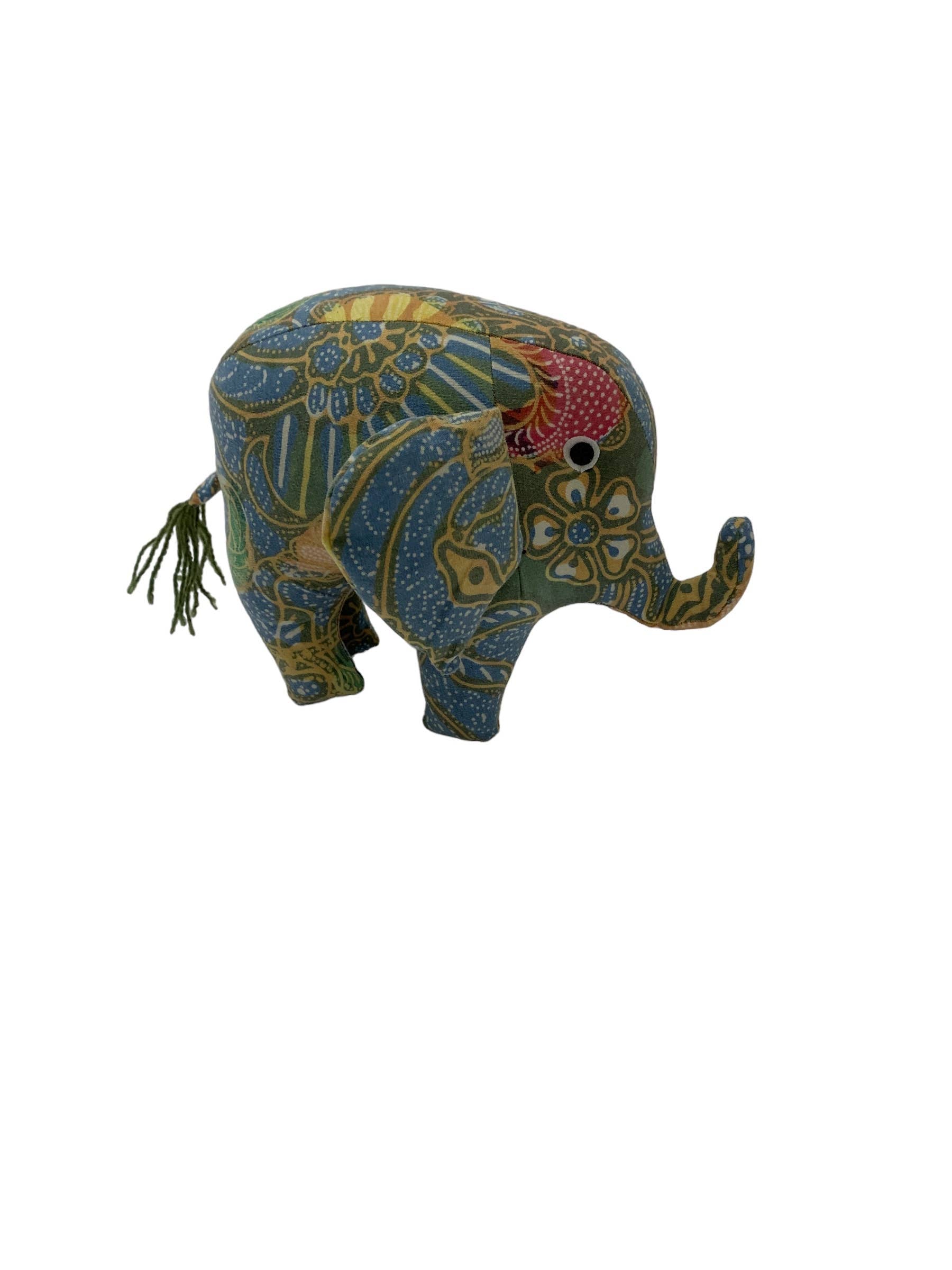 Crafted from colorful batik fabric, these plush elephants make the perfect addition to a playroom or add a touch of whimsy to any room when displayed on a shelf or bookcase.